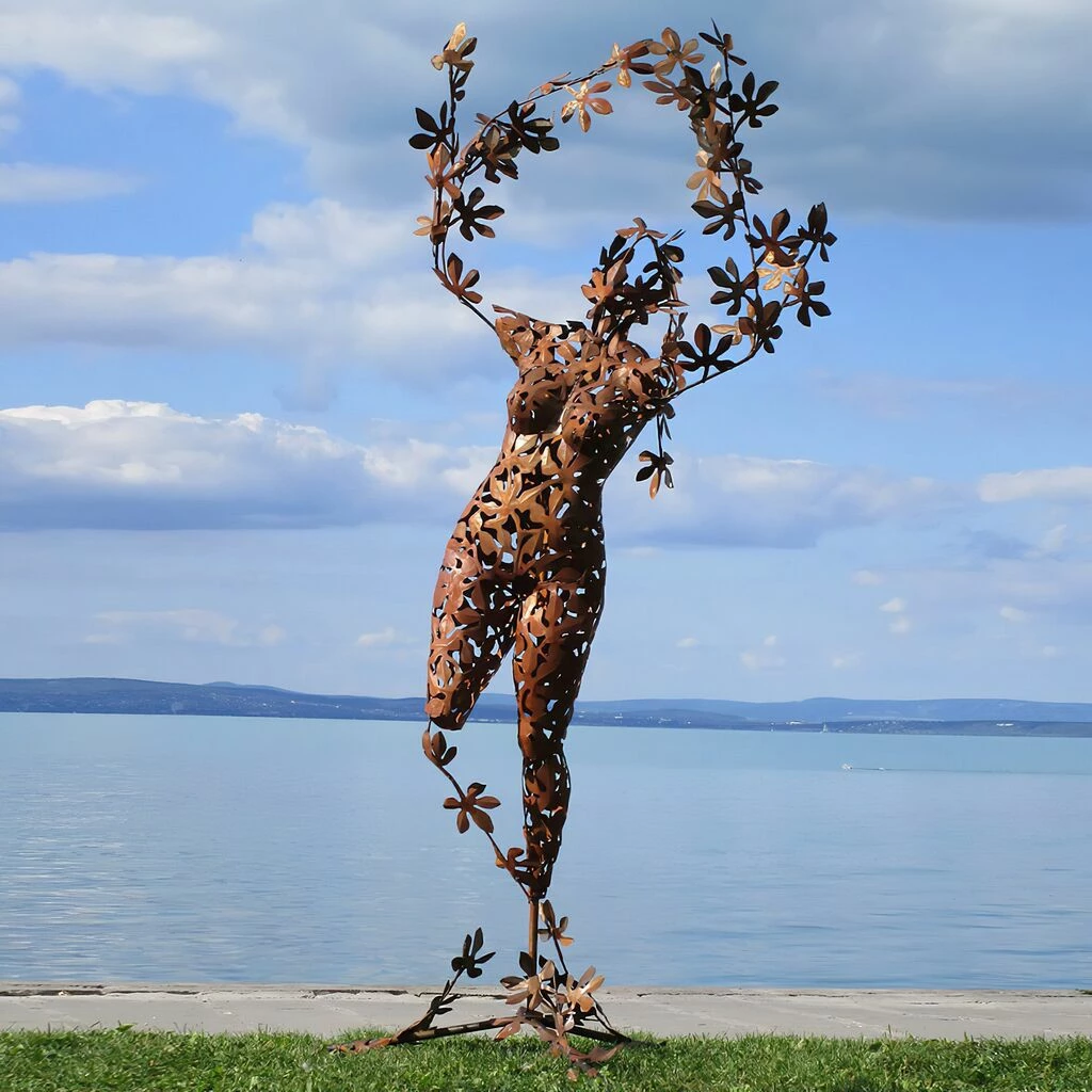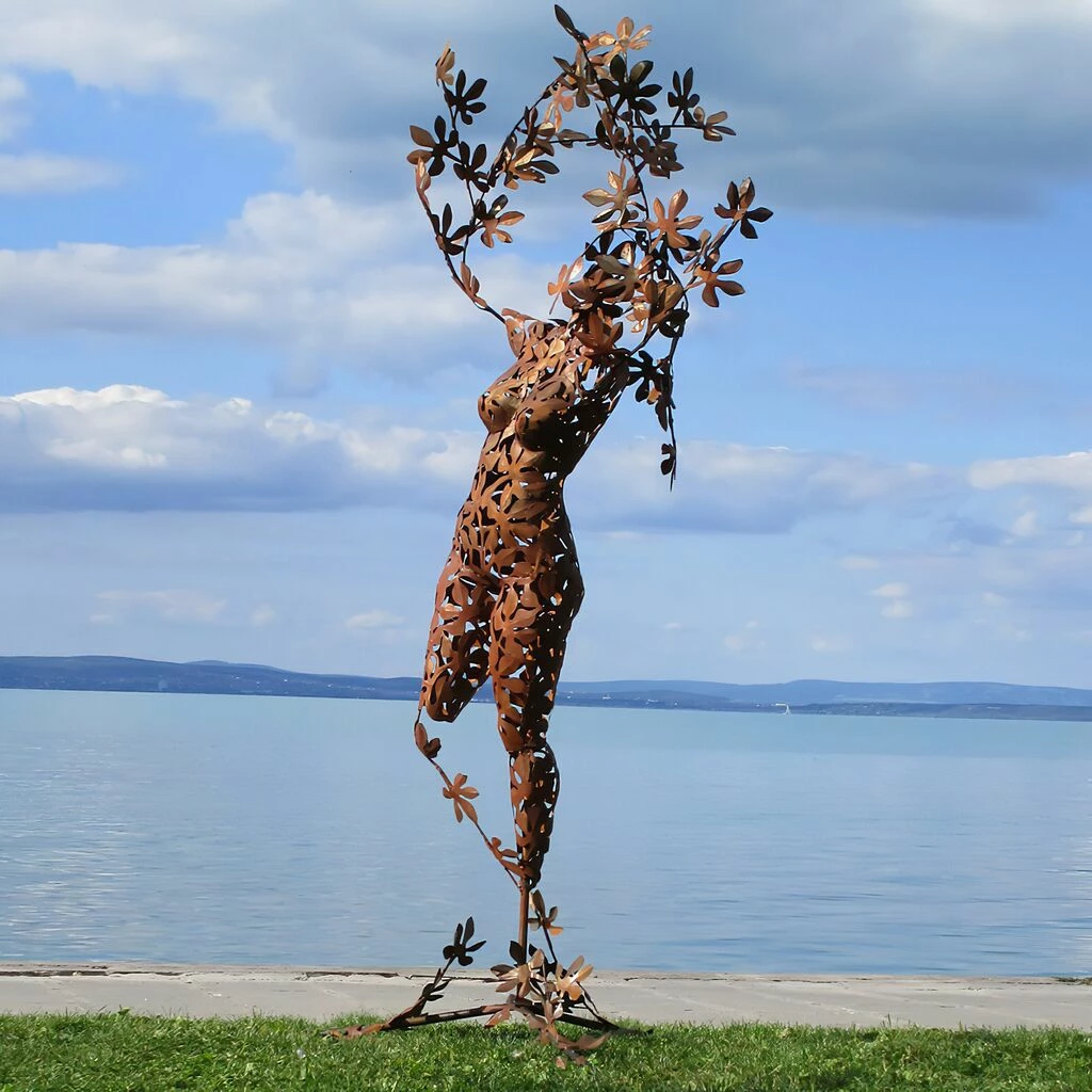 Bei den außergewöhnlichen Gartenfiguren des ungarischen Künstlers handelt es sich um handwerklich hergestellte Unikate. Die Skulpturen werden in klassischer Handarbeit gefertigt. Die Herstellung erfolgt entweder aus nicht rostendem Edelstahl oder aber aus Stahl (St37) welcher mit Säure behandelt wird damit die attraktive Rost Patina entsteht. Die rostigen Skulpturen werden mit einer Schutzschicht versehen um die Lebensdauer (ca. 50 Jahre) der Figuren zu erhöhen. Nach 50 Jahren können die Gartenskulpturen restauriert werden. Der verwendete Stahl hat eine Materialstärke von ca. 0,5-0,8mm. Entsprechende Befestigungsvorrichtungen für die Boden- bzw. Wandmontage sind in Form von Schrauben oder Ösen bauseits bereits berücksichtigt, so dass eine einfache Montage der Skulpturen im Garten erfolgen kann. Im Lieferumfang enthalten sind ebenfalls 3x 80cm lange und 12mm starke Beton Dübel zur sicheren Bodenbefestigung.