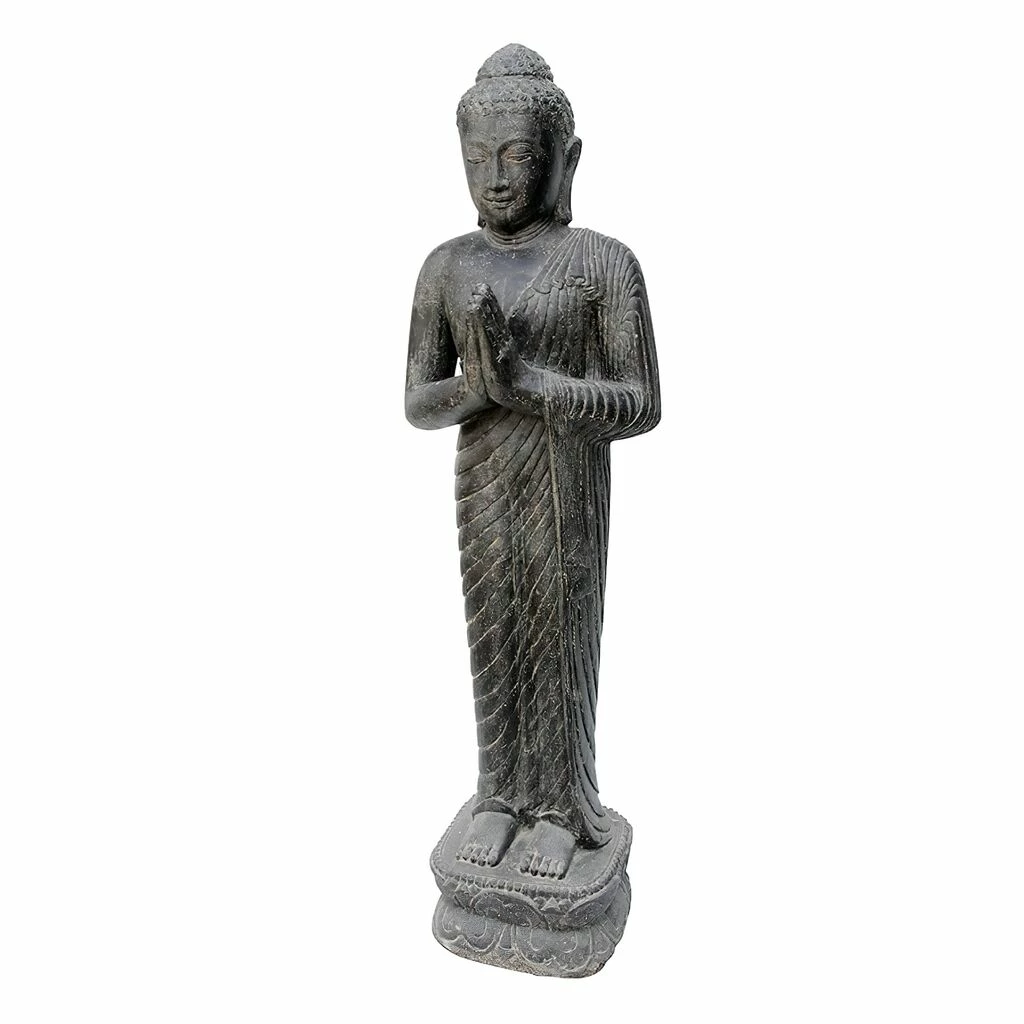 Begrüßende Buddha Skulptur Stehend Aus Steinguss Als Gartendeko – Kaihatsu
