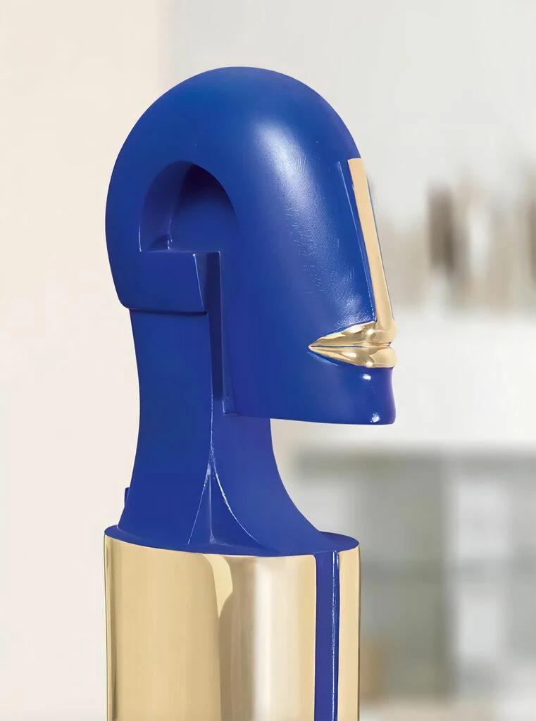 Blaue Bronzesäule Mit Kopf Und Goldapplikation – Idol