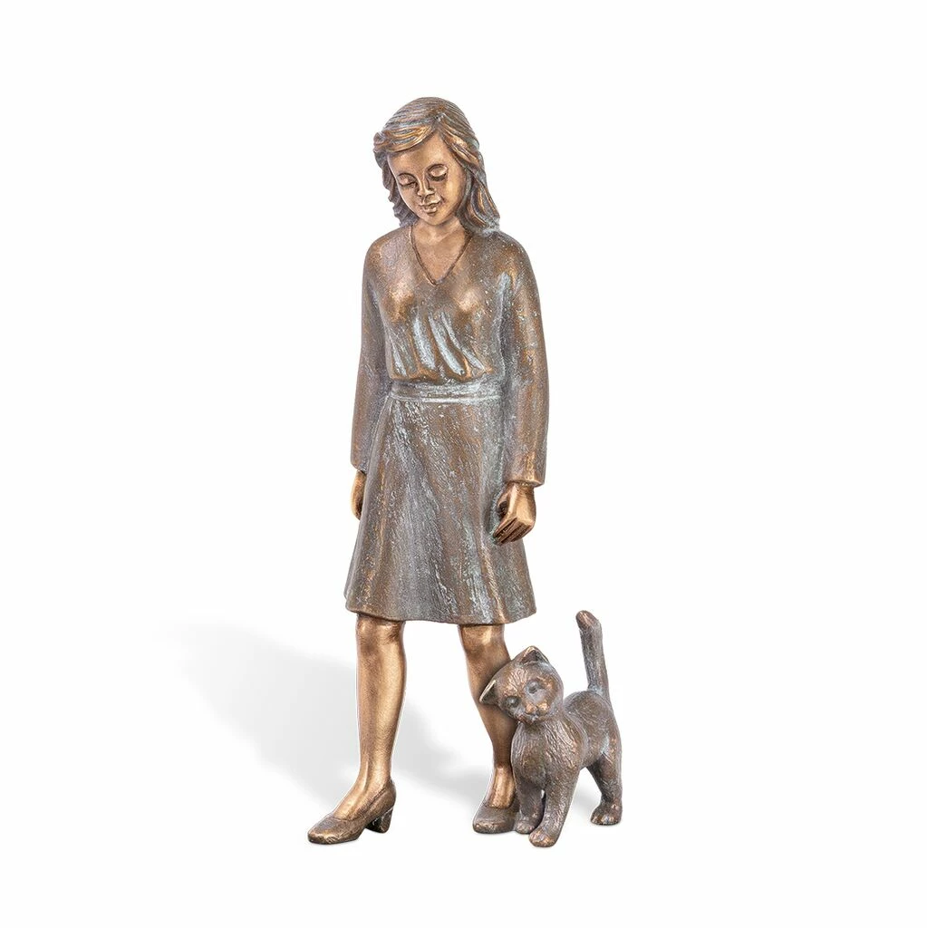 Das Metall ist extrem robust gegenüber Frost, Nässe sowie Hitze und sehr langlebig. Die Patina wird per Hand aufgetragen und führt aufgrund variierender Farbnuancen zu einer Einzigartigkeit jeder Skulptur. Die Farbe kann somit leicht vom Bild abweichen. Die Reinigung sollte ohne chemische Substanzen erfolgen, um die Schutzschicht nicht zu zerstören und kann einfach mit einem feuchten Tuch erfolgen. Die Gartenskluptur wird für die Befestigung auf einem Sockel mit Bohrungen an der Unterseite ausgestattet. Passende Gewindestifte liegen der Lieferung bei. Aufgrund des Hohlgusses sind die Figuren trotz des massiven Metalls recht leicht und können somit problemlos überall aufgestellt werden.