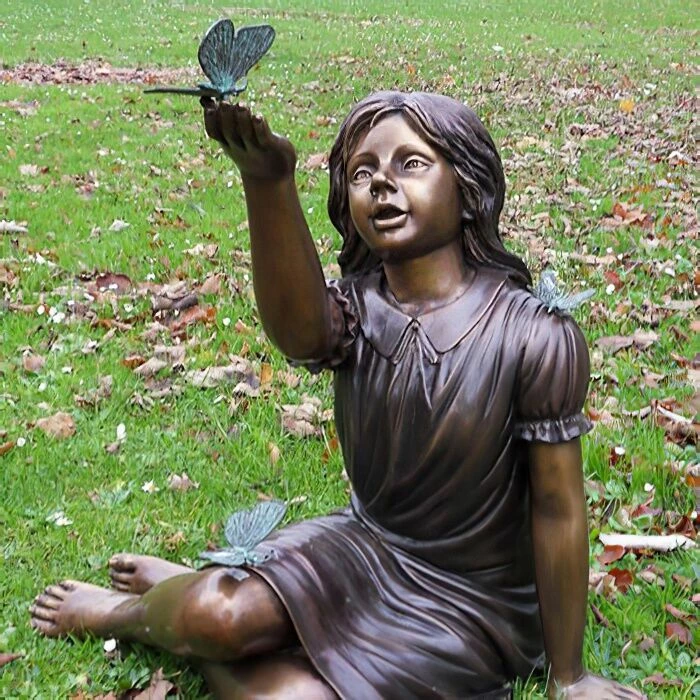 Mädchen mit Schmetterling als Bronzestatue
