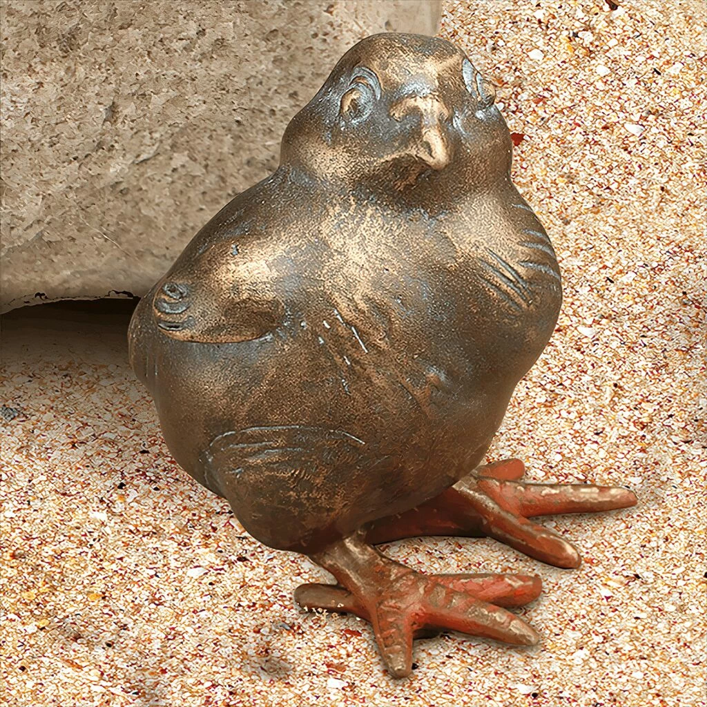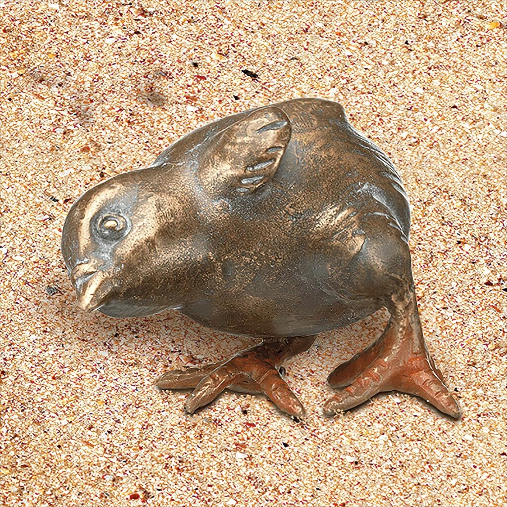 Die Bronze ist extrem robust gegenüber Frost, Nässe sowie Hitze und sehr langlebig. Die Patina wird per Hand aufgetragen und führt aufgrund variierender Farbnuancen zu einer Einzigartigkeit jeder Skulptur. Die Farbe kann somit leicht vom Bild abweichen. Die Reinigung sollte ohne chemische Substanzen erfolgen, um die Schutzschicht nicht zu zerstören und kann einfach mit einem feuchten Tuch erfolgen. Die Gartenstatuen werden für die Befestigung an einem Sockel mit Bohrungen an der Unterseite ausgestattet. Passende Gewindestifte liegen der Lieferung bei. Aufgrund des Hohlgusses sind die Skulpturen trotz der massiven Bronze recht leicht und können somit problemlos überall aufgestellt werden.