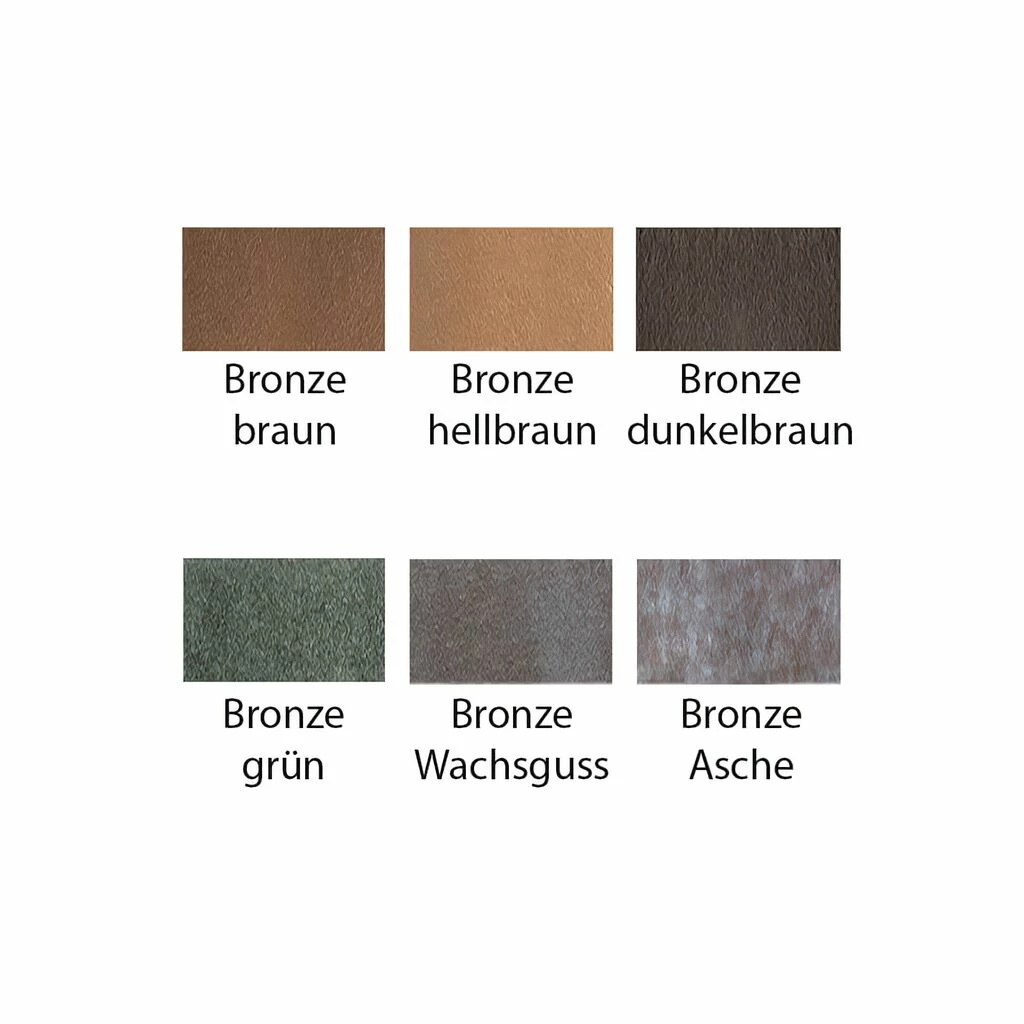 Die Bronze ist extrem robust gegenüber Frost, Nässe sowie Hitze und sehr langlebig. Die Patina wird per Hand aufgetragen und führt aufgrund variierender Farbnuancen zu einer Einzigartigkeit jeder Skulptur. Die Farbe kann somit leicht vom Bild abweichen. Die Reinigung sollte ohne chemische Substanzen erfolgen, um die Schutzschicht nicht zu zerstören und kann einfach mit einem feuchten Tuch erfolgen. Die Gartenstatuen werden für die Befestigung an der Wand mit Bohrungen an der Rückseite ausgestattet. Passende Gewindestifte liegen der Lieferung bei. Die Fertigung mit einer Cortenstahlpatina ist möglich. Im Gegensatz zu richtigem Cortenstahl liegt der Vorteil im Nicht-Verlaufen der Rostpatina bei Nässe.