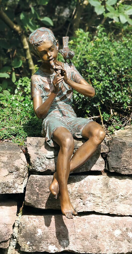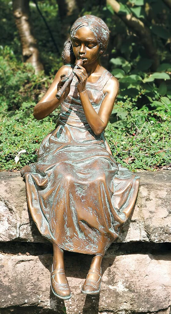 Bronzestatuen Flötenspieler Set – Limitierte Auflage – Mädchen Und Junge Set