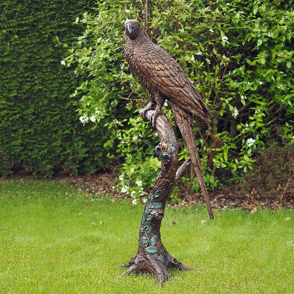 Bronzevogel Sitzt Auf Ast – Patinierte Gartenfigur – Papagei Tommi