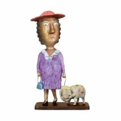 Dame Mit Hund – Bunte Bronzeskulptur Vom Künstler – Lady With A Dog