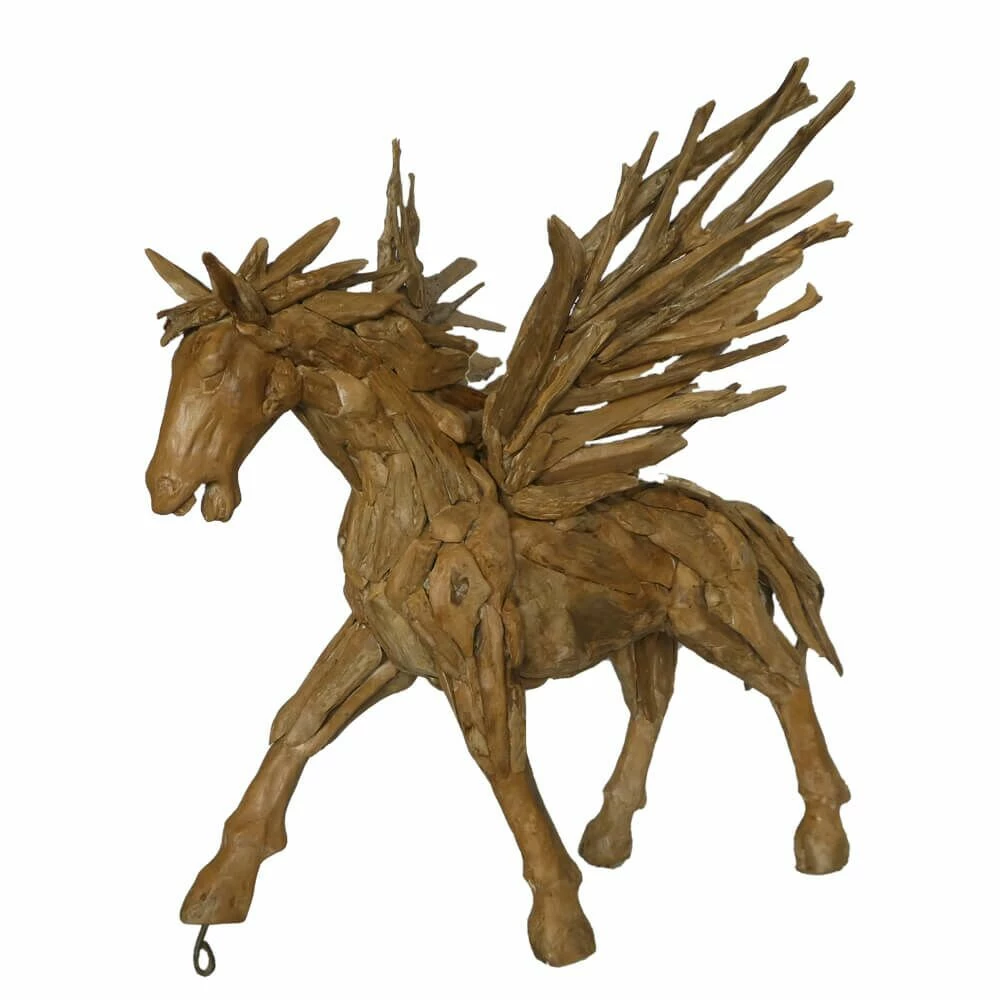 Aus wetterbeständigen Teakholz wird die Gartenfigur in Handarbeit nach lebendigen Vorbild gefertigt. Das verwendete Teakholz stammt von Plantagen oder aus wiederverwendeten Holzkonstruktionen. Die Figuren werden detailreich im Traditionshandwerk der Holzschnitzkunst ausgearbeitet und versprechen eine lange Lebensdauer. Das helle Holz, welches mit dunklen Farbnuancen durchzogen ist, trotzt Nässe und ist schwer entflammbar. Pilze mögen das Hartholz ebenfalls nicht.