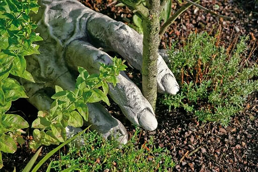 Eine außergewöhnliche Dekoration für mystische Gärten stellt diese Hand eines Gnoms dar. Die Gartenplastik wird im Steingussverfahren modelliert und ist robust gegenüber Frost, Nässe sowie starker Sonneneinstrahlung.