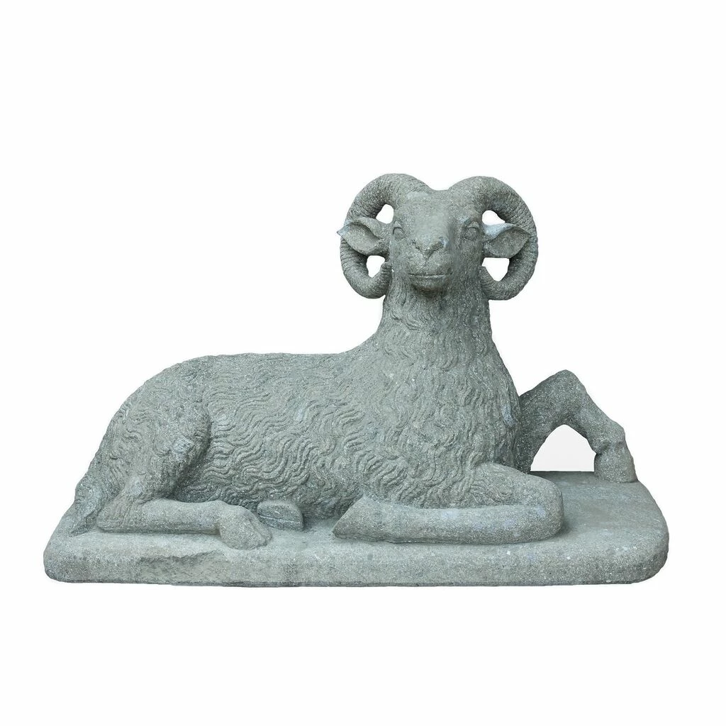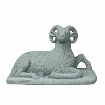 Diese liegende Widder Skulptur ist eine Bereicherung für jedes anspruchsvoll gestaltete Gartenambiente und wurde für alle Liebhaber naturalistischer Steinmetzkunst geschaffen. Mit erhobenem Kopf präsentiert sich unser Widder als naturnahe und detailgetreue Skulptur aus Naturstein. Die liebevolle Ausarbeitung unseres Widders macht diese Steinfigur zu einem besonderen Anziehungspunkt in Ihrem Garten. Unsere Widderskulptur wird in traditioneller Handarbeit aus dem vollen Stein geschlagen, ist wetterbeständig und frostsicher. Da es sich bei diesen kunstvoll von Hand hergestellten Steinskulpturen um echte Unikate handelt, kann jeder Widder aus Naturstein in Struktur und Farbgebung leicht von der beispielhaften Darstellung in unserem Onlineshop abweichen. Wenn Ihnen unsere Widder Skulptur als Unikat aus Stein gefällt, können Sie diese und weitere hochwertige Gartenskulpturen aus Naturstein bequem in unserem Onlineshop bestellen.