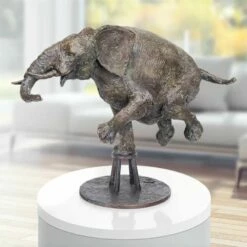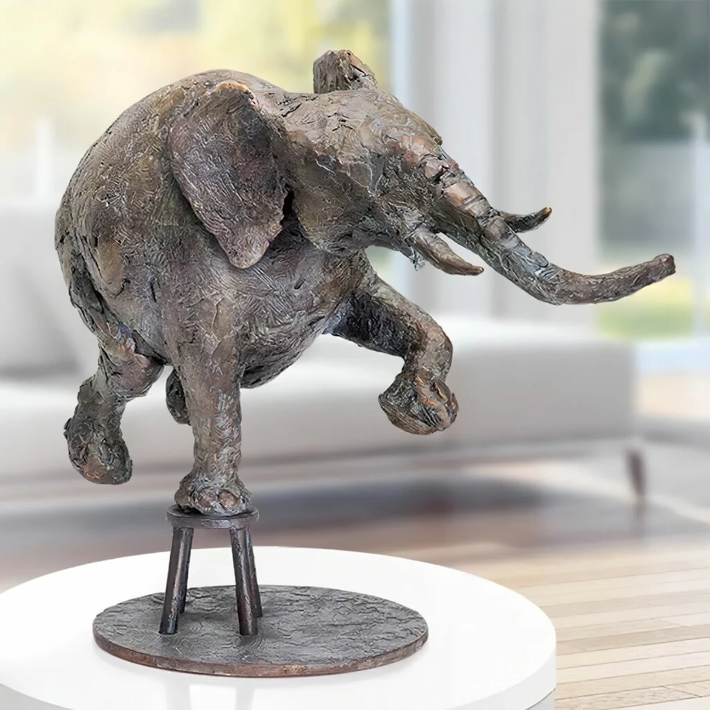 Elefant Balanciert Auf Hocker – Bronzeskulptur Limitiert – Zirkuselefant