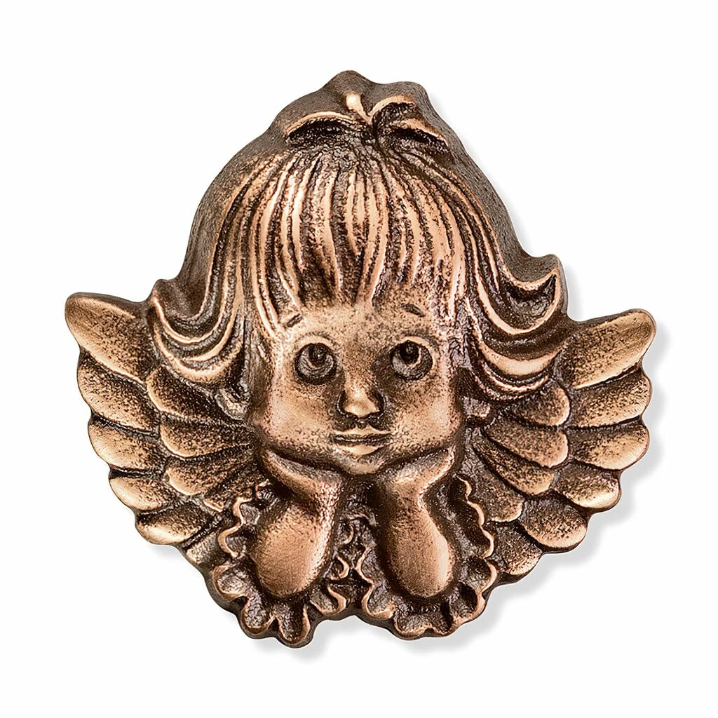 Mit einem kindlichen Gesicht modelliert, zeichnet sich das Engelsrelief durch eine stilvolle Verarbeitung und mit einer hohen Robustheit aus. Neben Bronze ist der Engel auch in Aluminium erhältlich.