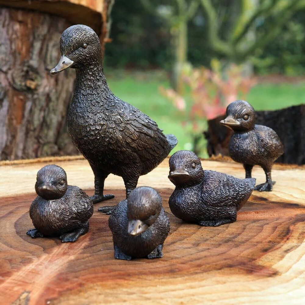 Entenmutter Mit Kücken Aus Bronze – Entenfamilie