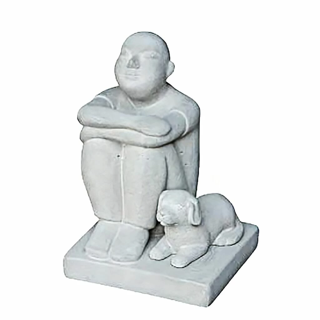 Die Garten Figur FRED wird aus Glasfaserbeton handgefertigt und besticht neben der grauen Zement Optik vor allem durch seine Langlebigkeit. Die Skulptur eines sitzenden Mannes mit seinem liegenden Hund ist winterfest und für die dauerhafte Aufstellung im Außenbereich geeignet. Diese stilvolle Garten Deko ist ein Blickfang in Ihrem Vorgarten oder auf Ihrer Terrasse.