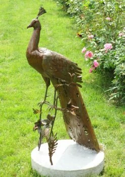 Auf einem Podest aus Metall gefertigt, ist dieser Torso ein stilvolles Dekoobjekt im Garten. Die Aktfigur erhält einzigartige Merkmale im Traditionshandwerk.