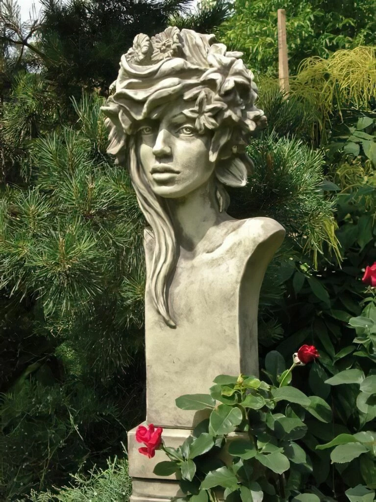 Dieses Blumenmädchen wird per Hand von Bildhauern liebevoll gefertigt. Das Design und die hohe Langlebigkeit eignen sich optimal für die Gestaltung von romantischen Gärten. Die Büste kann mit dem Sockel Tamus kombiniert werden.