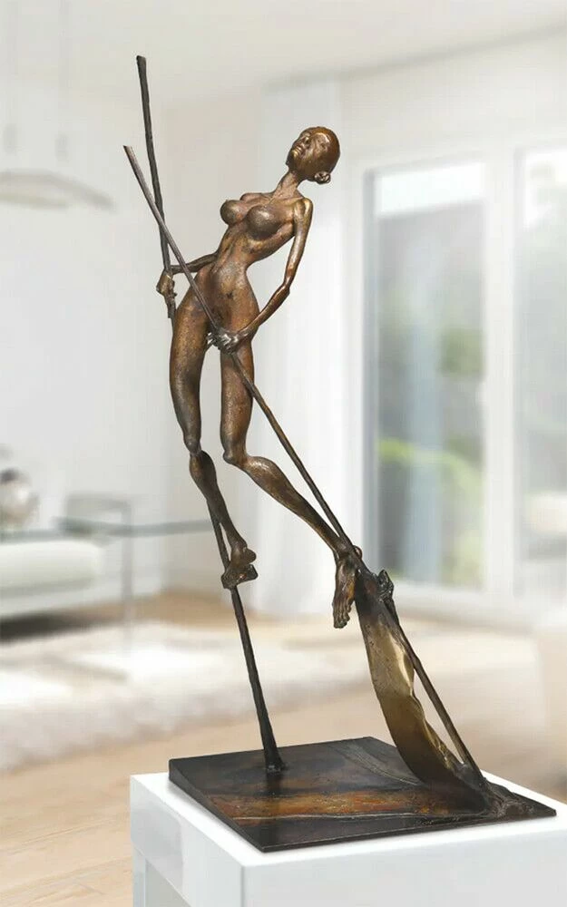 Frau Auf Stelzen – Stilvolle Bronze Aktskulptur – Die Königin