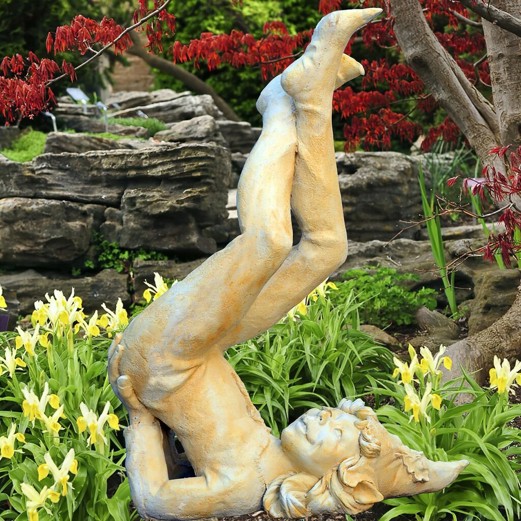Schöne Gartenfigur einer lustigen Elfe aus Steinguss