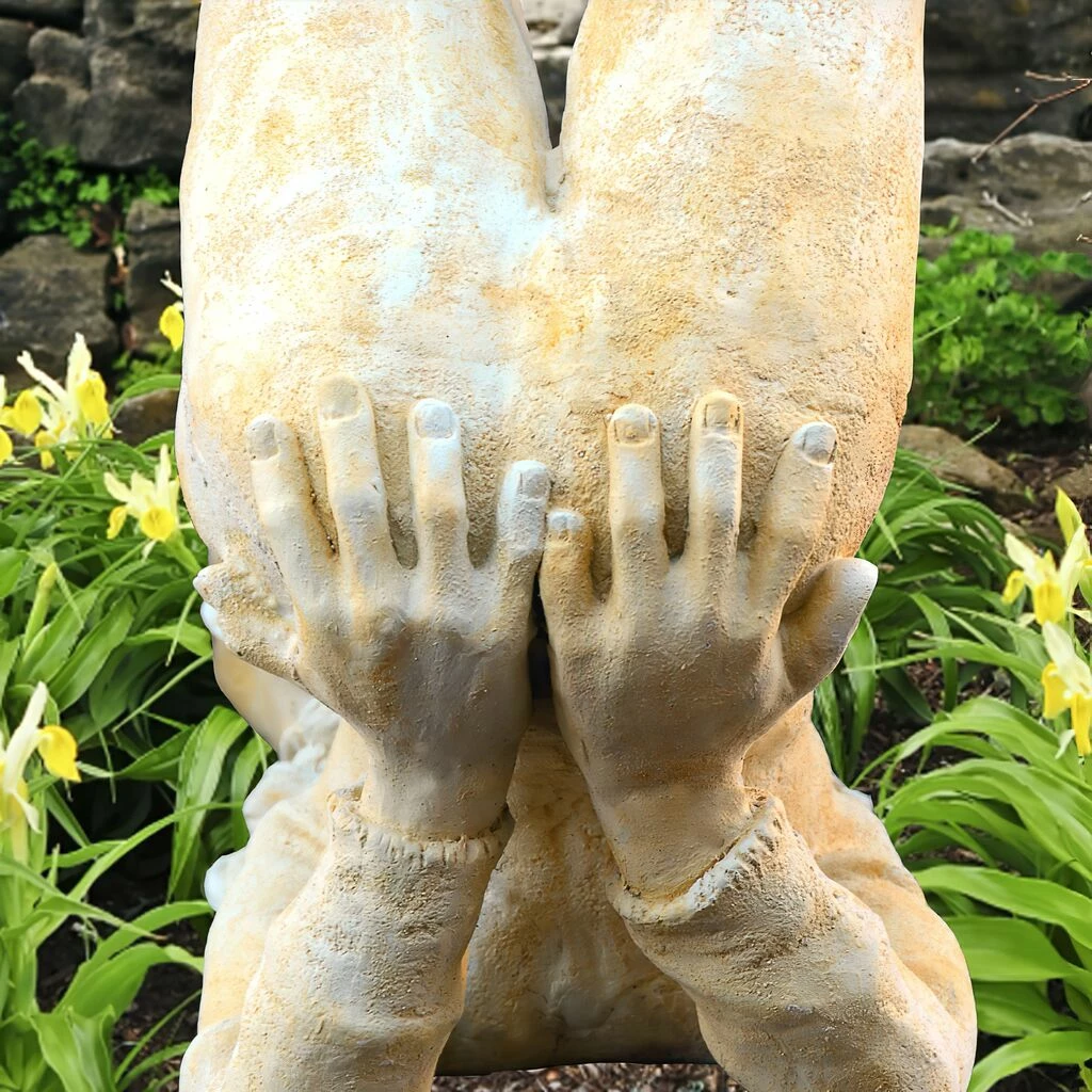 Unsere Deko Elfenskulpturen zeichnen sich dadurch aus, dass sie einen besonders natürlichen Steincharakter aufweisen und zusätzlich absolut wetterbeständig und frosthart sind. In einem speziellen Verfahren wird die Steinmasse aus Wasser, gemahlenem Stein, Beton und bestimmten Zuschlagstoffen in eine Kautschukform eingebracht und verdichtet. Aus der Negativform können später bis zu 30 Steingusselfen für eine zauberhafte Gartendekoration gewonnen werden. Diese hohe Qualität der Figuren aus Steinguss wird durch ausschließlich hochwertige Zuschlagstoffe für die Kunststeinmasse erreicht. Aus diesem Grund wirkt diese schöne Elfenstatue, als wäre sie aus echtem Naturstein gehauen. Die Steinelfe kann deshalb bedenkenlos auch bei strengem Frost im Garten verbleiben und bietet somit eine ganzjährige Dekoration für den Außenbereich.