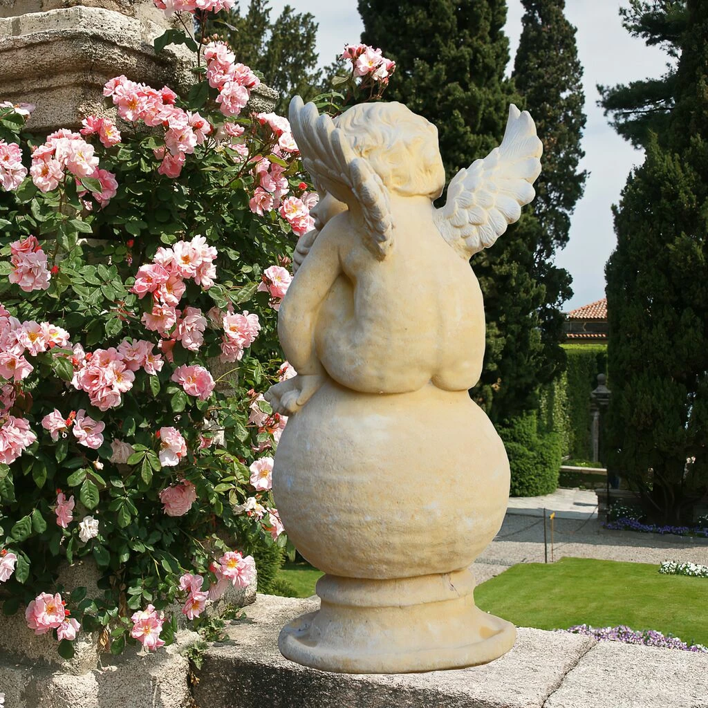 Engeljunge auf einer Kugel als Gartenskulptur