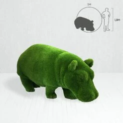 Alle Figuren entstehen als 3D-Modell am Computer. Anschließend wird der Rahmen aus Glasfaserkunststoff hergestellt und von Hand mit Kunstrasen beklebt. Jede Skulptur ist somit ein individuelles Unikat. Dank des Glasfaser Rahmens sind die Topiaries besonders leicht, stoßfest und langlebig – außerdem rostfrei, korrosions- sowie temperatur- und UV-beständig. Es sind keine weiteren Pflegemaßnahmen nötig. Die Gewichtsbeschränkung für die Formschnittfiguren liegt zwischen 30 bis 250kg. Wichtig ist, dass die Skulpturen weit entfernt von Feuerstellen aufgestellt werden.