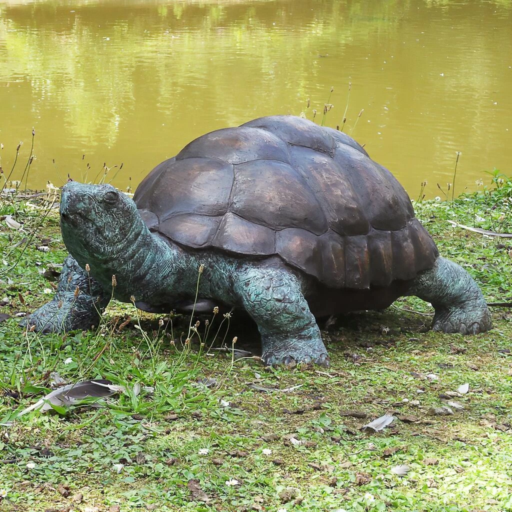 Eine Schildkröte als große Bronzefigur