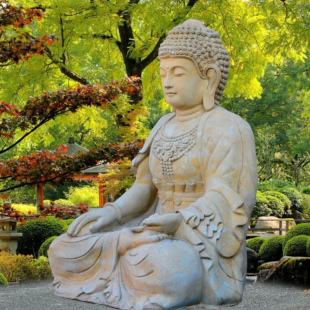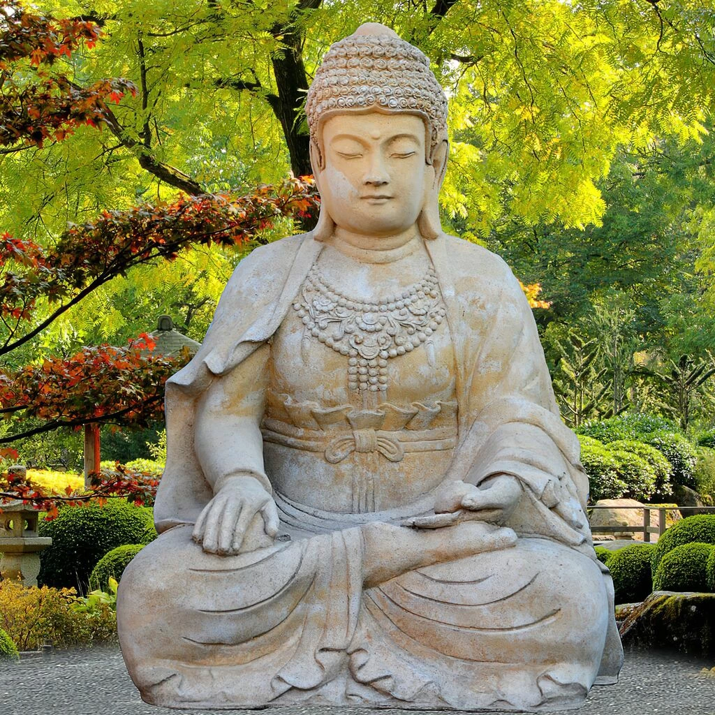 Mit viel Liebe zum Detail in aufwändiger Handarbeit hergestellt, wird Sie unser großer, sitzender Buddha gewiss in seinen Bann ziehen. Unsere Buddha Steinskulpturen weisen einen besonders natürlichen Steincharakter auf und zeichnen sich durch ihre hohe Qualität und Festigkeit auch in strengen Wintern aus. Dafür gewähren wir unseren Kunden eine 2jährige Garantiezeit ab dem Kaufdatum der Buddha Gartenfigur. Diese positiven Eigenschaften unserer Skulpturen werden durch die Verwendung ausschließlich hochwertiger Zuschlagstoffe beim Steingussverfahren erreicht. Leichte Abweichungen in Form und Farbe der Buddahfiguren sind aufgrund des speziellen Herstellungsprozesses und der damit verbundenen Handarbeit möglich – Sie erwerben mit einem Buddha aus Stein somit ein individuelles Kunstwerk von besonderem Wert.