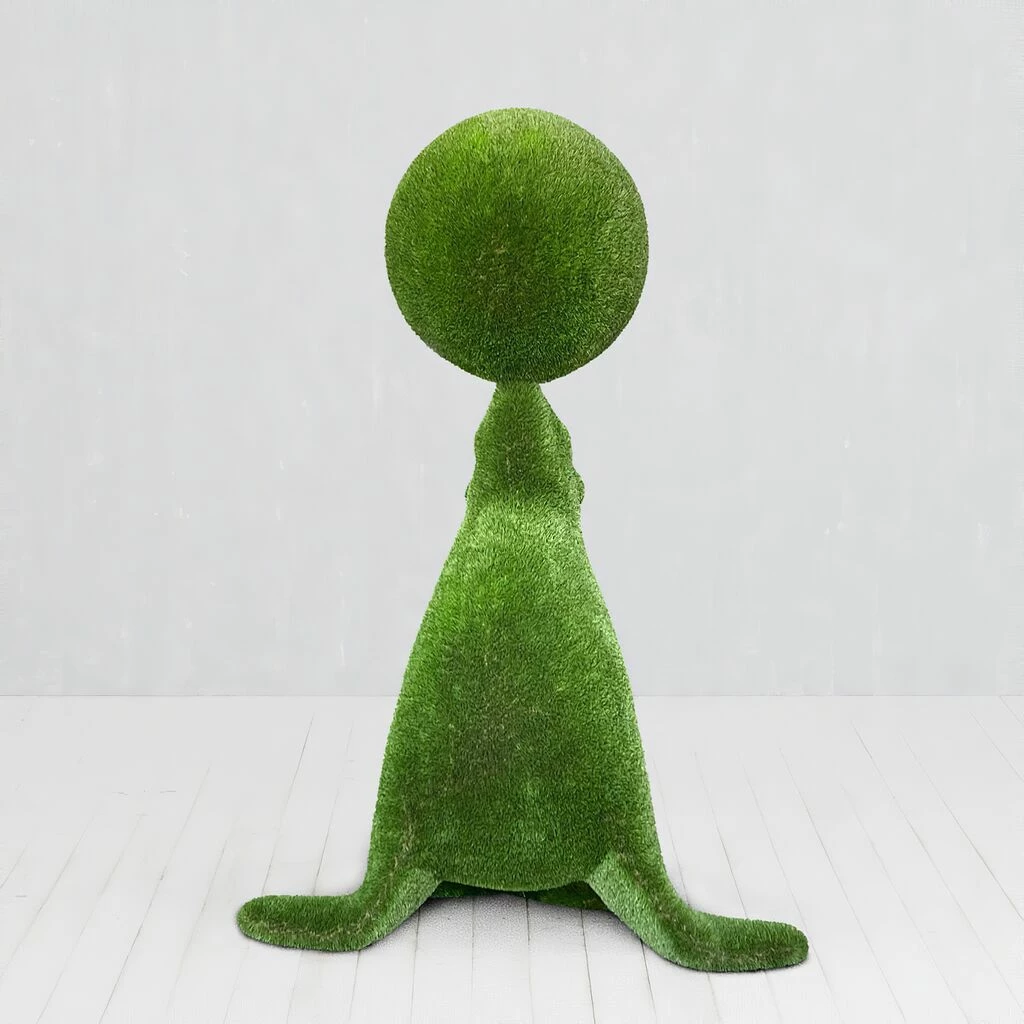Alle Figuren entstehen als 3D-Modell am Computer. Anschließend wird der Rahmen aus Glasfaserkunststoff hergestellt und von Hand mit Kunstrasen beklebt. Jede Skulptur ist somit ein individuelles Unikat. Dank des Glasfaser Rahmens sind die Topiaries besonders leicht, stoßfest und langlebig – außerdem rostfrei, korrosions- sowie temperatur- und UV-beständig. Es sind keine weiteren Pflegemaßnahmen nötig. Die Gewichtsbeschränkung für die Formschnittfiguren liegt zwischen 30 bis 250kg. Bitte achten Sie darauf, die Skulpturen weit entfernt von Feuerstellen aufzustellen.