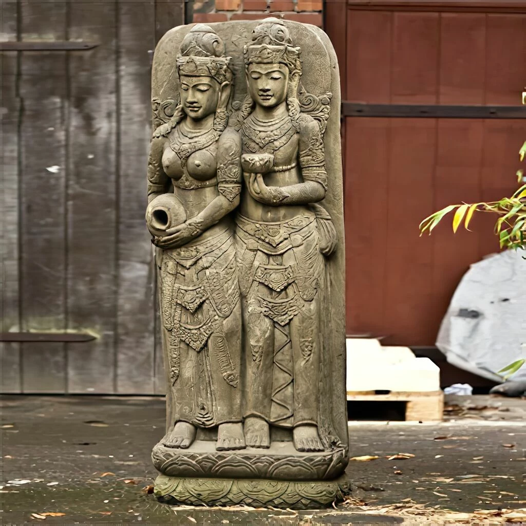 Asiatisches Steinrelief zweier Frauen für den Garten