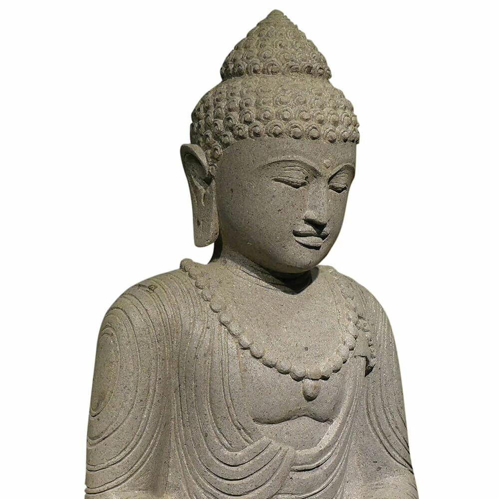 Das Aufstellen einer Buddha Steinskulptur drückt einen bestimmten Lebensstil aus, der von Achtsamkeit, Gelassenheit und dem Ausgleich zwischen Ruhe und aktivem Leben geprägt ist. Nach indischer Überlieferung tragen buddhistische Mönche ein gelbes oder rötliches Mönchsgewand, scheren ihre Haare und leben als Wanderasketen. Buddhas verbringen die Tage mit Meditation und Belehrung der Schüler und leben von der fleischlosen Nahrung, die sie sich täglich während ihres morgendlichen Almosengangs erbetteln und noch vor dem Mittag zu sich nehmen müssen. Diese Regeln sind in vielen buddhistischen Ländern nach wie vor allgemein gültig.