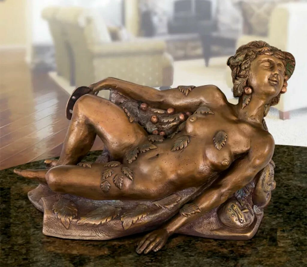 Junge Frau Im Blättekleid – Limitierte Bronzeskulptur – Maskerade