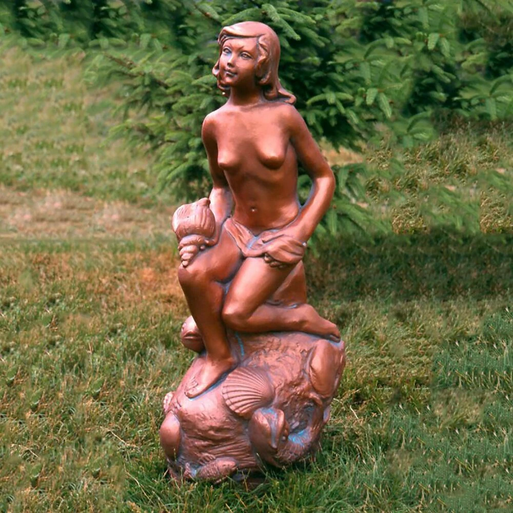 Die Gartenskulptur wird aus hochwertigem Kunststein angefertigt und enthält unter anderem Bestandteile von Quarz, Kalkstein und Feldspäten. Die Figur wird von Hand bemalt, wodurch einzigartige Farbverläufe entstehen. Jede Skulptur ist ein Unikat, welche durch hochqualitative Materialien und eine professionelle Verarbeitung eine ausgezeichnete Witterungsbeständigkeit erreicht. Der Steinguss trotzt sowohl heißen wie auch kalten Temperaturen und besitzt die Fähigkeit der Selbstreparatur. Das bedeutet, dass Mikrorisse sich in einer natürlichen Umgebung von selbst heilen bzw. wieder verschließen. Die Dekoration wird mit einem halbglänzenden Finish in Ihrer Wunschfarbe geliefert.