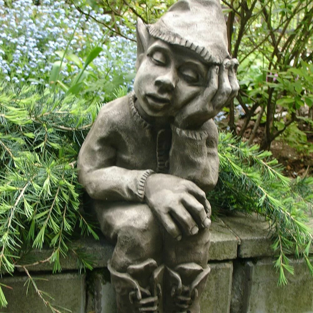 Diese träumende Wichtel Figur wird aus einem hochwertigen Steinguss in England gefertigt. Die schlafende Steinfigur ist witterungsbeständig und kann ganzjährig im Garten aufgestellt werden. Im Gegensatz zu seinem Kumpel „Almar“ hat die Müdigkeit diesen kleinen Kobold dahin gerafft. Friedlich schlummert er mit offenem Mund, den Kopf in die Hand gelegt vielleicht auch bald in Ihrem Garten. Als Kantenhocker kann er direkt auf einen Sockel, eine Treppe oder eine kleine Mauer gesetzt werden.