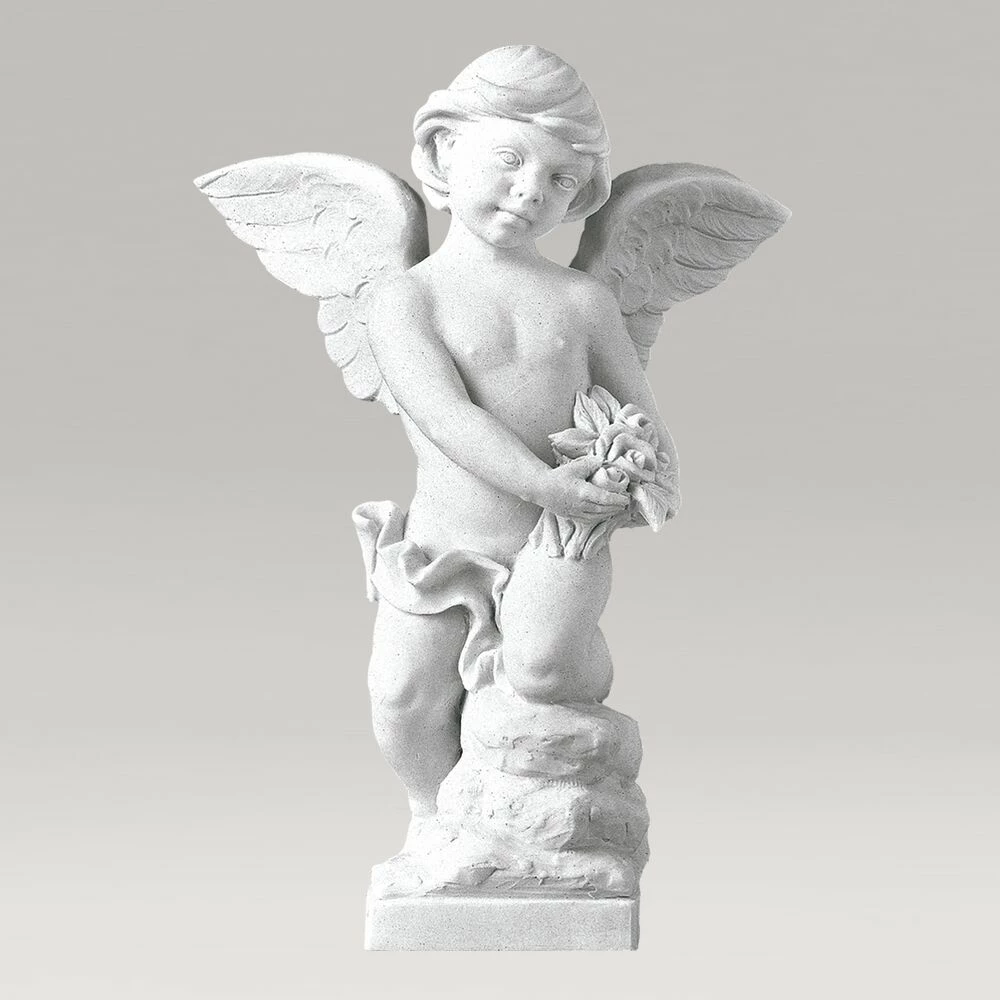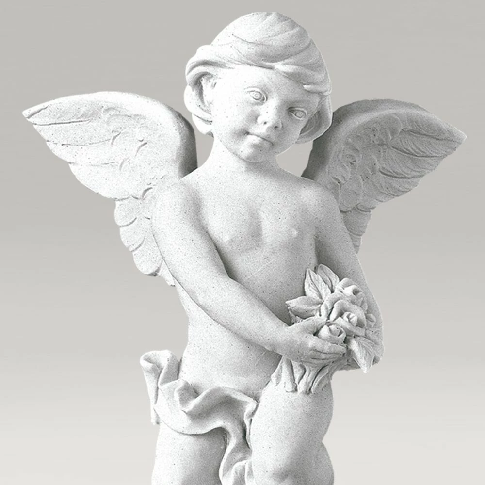 Klassische Garten Engelsfigur Mit Blumen – Marmorguss – Engel Nino