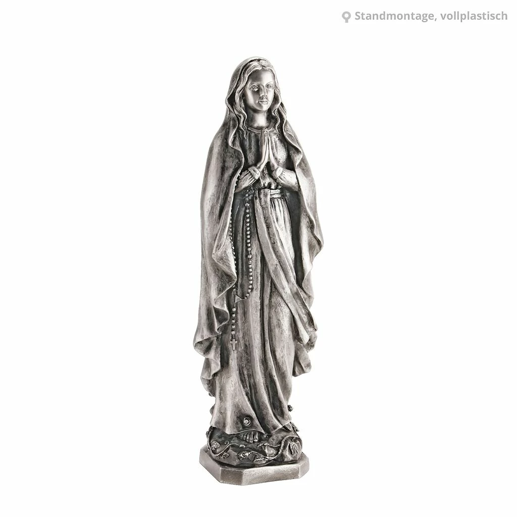 Diese betende Abbildung der Madonna besticht mit ihren handgearbeitenden Details. Da Bronze und Aluminium als wetterfest gelten, ist die Skulptur perfekt für den Gartenbereich geeignet. Eine eventuelle Montage auf einem Sockel wird durch die im Lierferumfang enthaltenen Schrauben und Gewindestäbe möglich.