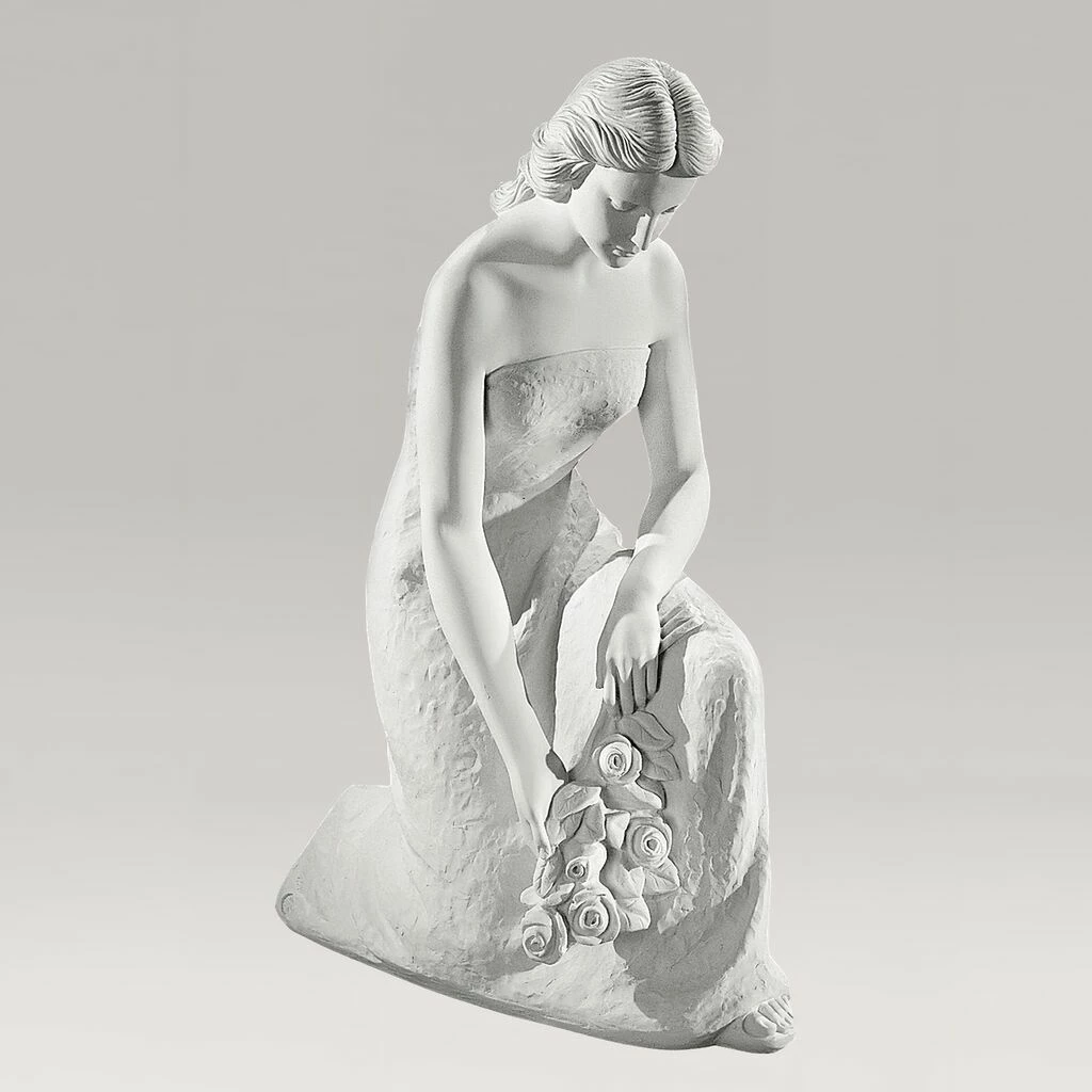 Kniende Himmelskönigin Mit Rosen – Weißer Marmorguss – Madonna Floridis