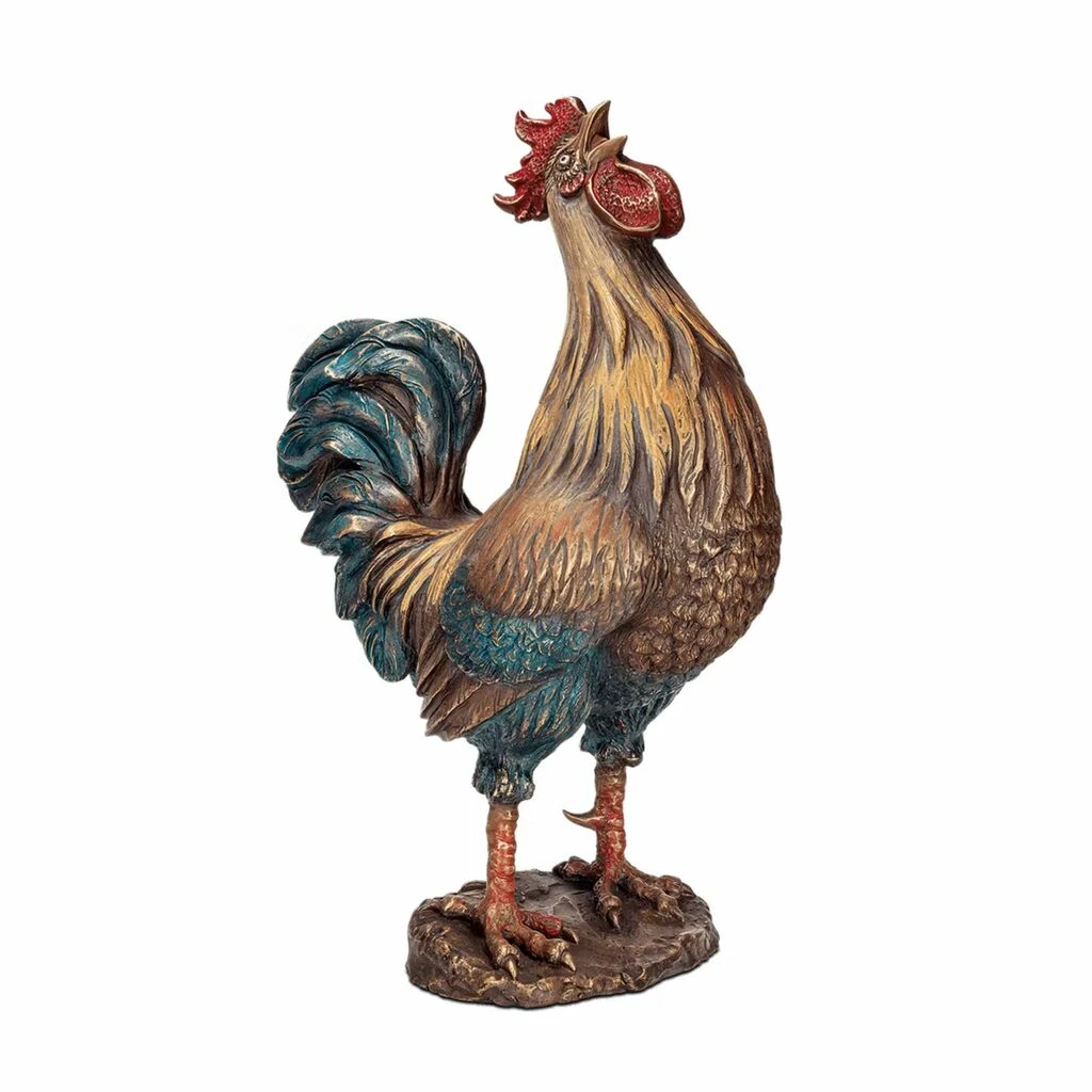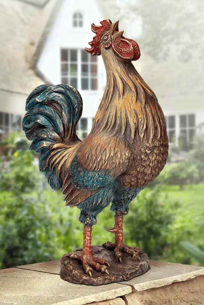 Krähender Hahn In Lebensgröße Limitiert Aus Bronze – Bunt – Stolzer Hahn