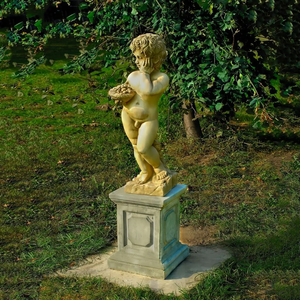 Die Gartenskulptur wird aus hochwertigem Kunststein angefertigt und enthält unter anderem Bestandteile von Quarz, Kalkstein und Feldspäten. Die Figur wird von Hand bemalt, wodurch einzigartige Farbverläufe entstehen. Jede Skulptur ist ein Unikat, welche durch hochqualitative Materialien und eine professionelle Verarbeitung eine ausgezeichnete Witterungsbeständigkeit erreicht. Der Steinguss trotzt sowohl heißen wie auch kalten Temperaturen und besitzt die Fähigkeit der Selbstreparatur. Das bedeutet, dass Mikrorisse sich in einer natürlichen Umgebung von selbst heilen bzw. wieder verschließen. Die Dekoration wird mit einem halbglänzenden Finish in Ihrer Wunschfarbe geliefert.