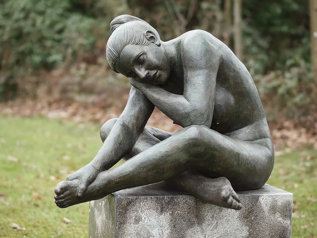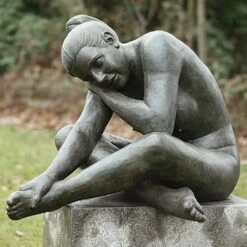 In völlig entspannter Haltung begegnet uns diese kunstvolle Plastik einer nackten Frau aus Bronze auf einem Sockel sitzend. Ihre Beine sind übereinander geschlagen, mit der einen Hand stützt sie sich am Fuß ab, um ihren Kopf mit geschlossenen Augen sanft auf ihrem Handrücken ruhen zu lassen. Diese hinreißende Frauenskulptur aus Bronze vermittelt uns ein Gefühl von Ruhe und Ausgeglichenheit. Es ist das Zusammenspiel von künstlerischer Aussagekraft und kunsthandwerklichem Können, das unsere Plastiken in Bronzekunst so einzigartig macht.
