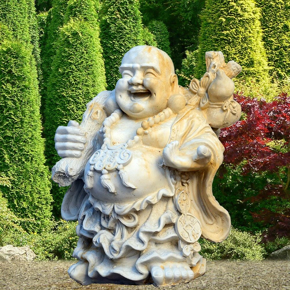 Wir begrüßen Sie bei GARTENTRAUM – Ihrem Onlinekatalog für hochwertige und einzigartige Buddha Steinskulpturen für den Garten. Dieser kleine Buddha aus Stein wurde von erfahrenen Bildhauerhänden in einem aufwändigen Steingussverfahren gefertigt und ist hervorragend als Dekoration im Vorgarten, im Garten oder auf der Terrasse geeignet. Der Happy Buddha nimmt im Buddhismus eine zentrale Stellung ein und verkörpert Glück und Zufriedenheit. Jedes Detail dieser freundlichen Buddhaskulptur strahlt Harmonie und Freude aus und vermittelt dem Betrachter die tiefen Wurzeln dieser Weltreligion auf eine besonders schöne Weise. Zwischen Bambus Pflanzen, am Gartenteich oder als stilvolle Bereicherung zu einem Kugelbrunnen im Garten sorgt unser lachender Steinbuddha „Vairocana“ für Fröhlichkeit und Wohlbefinden. Mit dieser kleinen Buddha Steinskulptur, die wir hier in unserem Gartentraum-Shop in verschiedenen Ausführungen zum Kaufen anbieten, erwerben Sie eine besondere Dekoration aus hochklassigem Sandsteinguss, die auch Ihren Garten in eine harmonische und friedliche Atmosphäre tauchen wird. Überzeugen Sie sich selbst!
