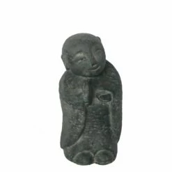 Jizo ist ein buddhistischer Mönch aus der japanischen Tradition mit kahl geschorenem Kopf. Er ist der Schutzgott der Kinder und ihrer Seelen. Sein Gesicht weist jugendliche Züge auf, wodurch er kindliche Freude verbreitet.
