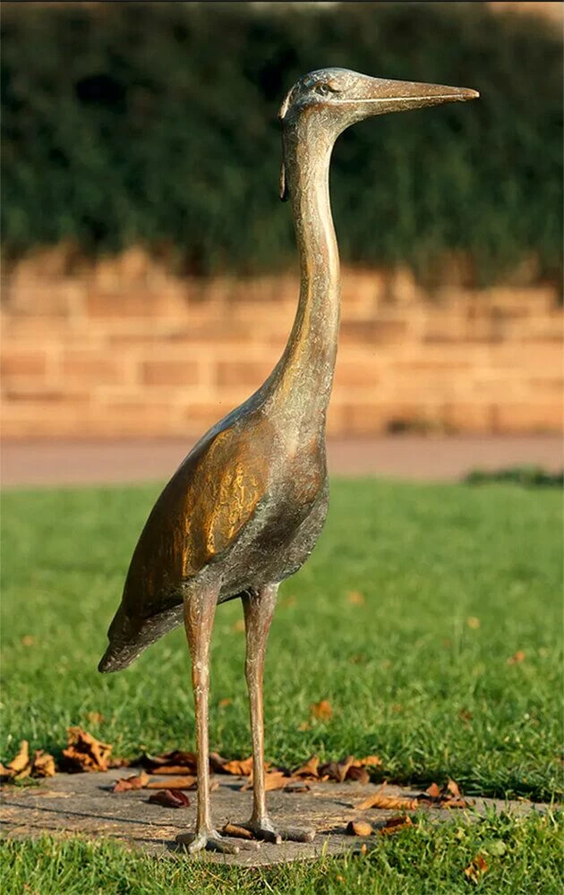 Lebensgroße Reiherskulptur – Limitierte Bronzestatue – Graureiher