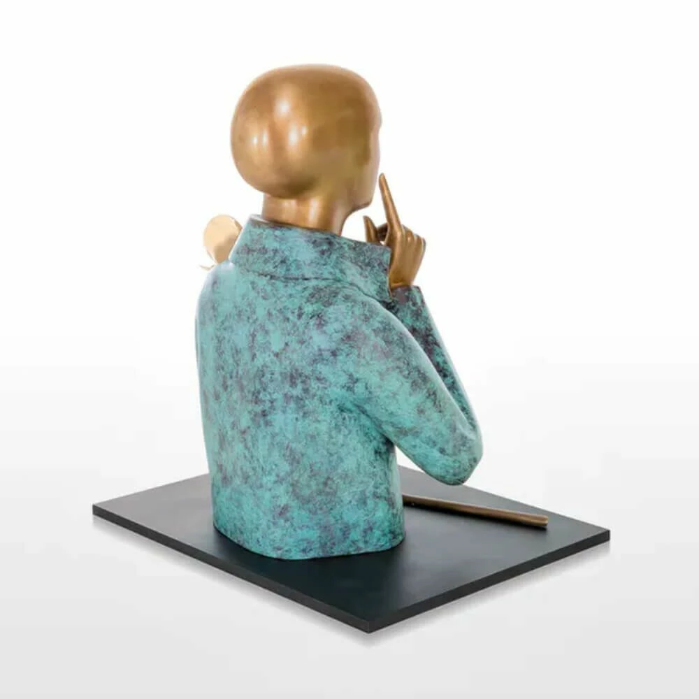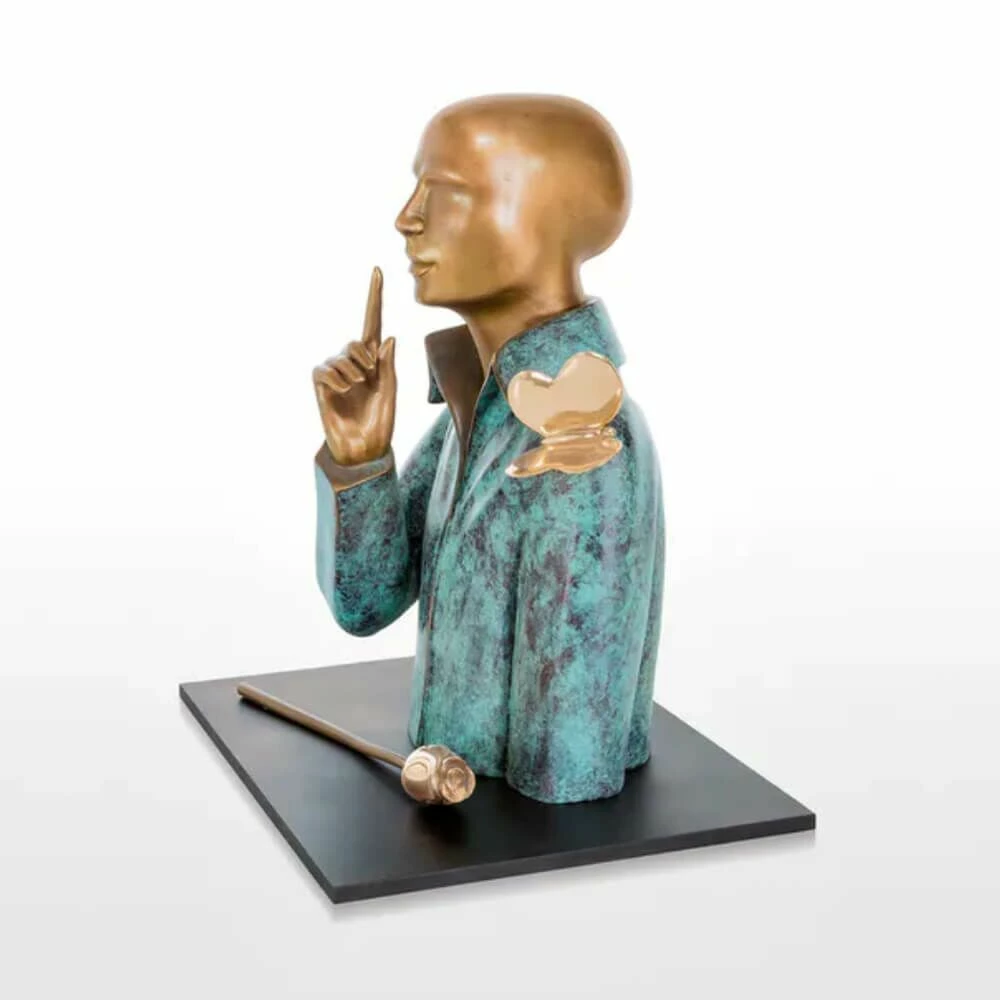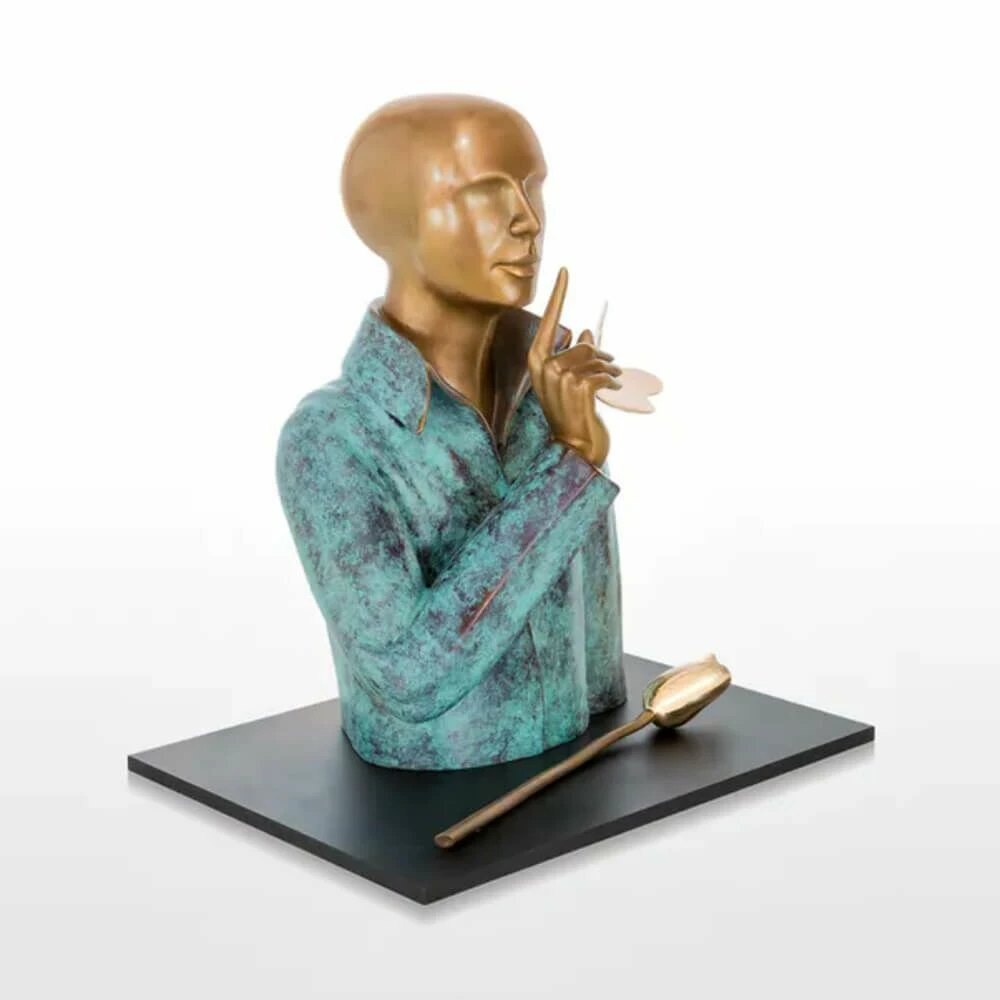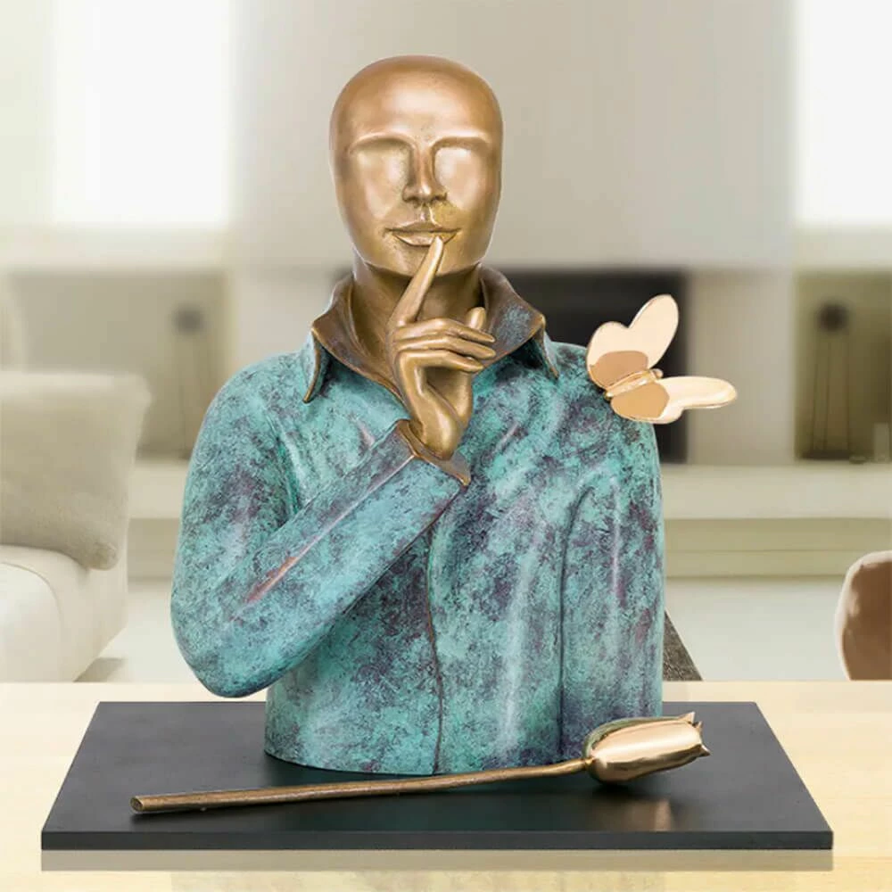Limitierte Bronze Mannbüste Mit Rose Und Schmetterling – Silence