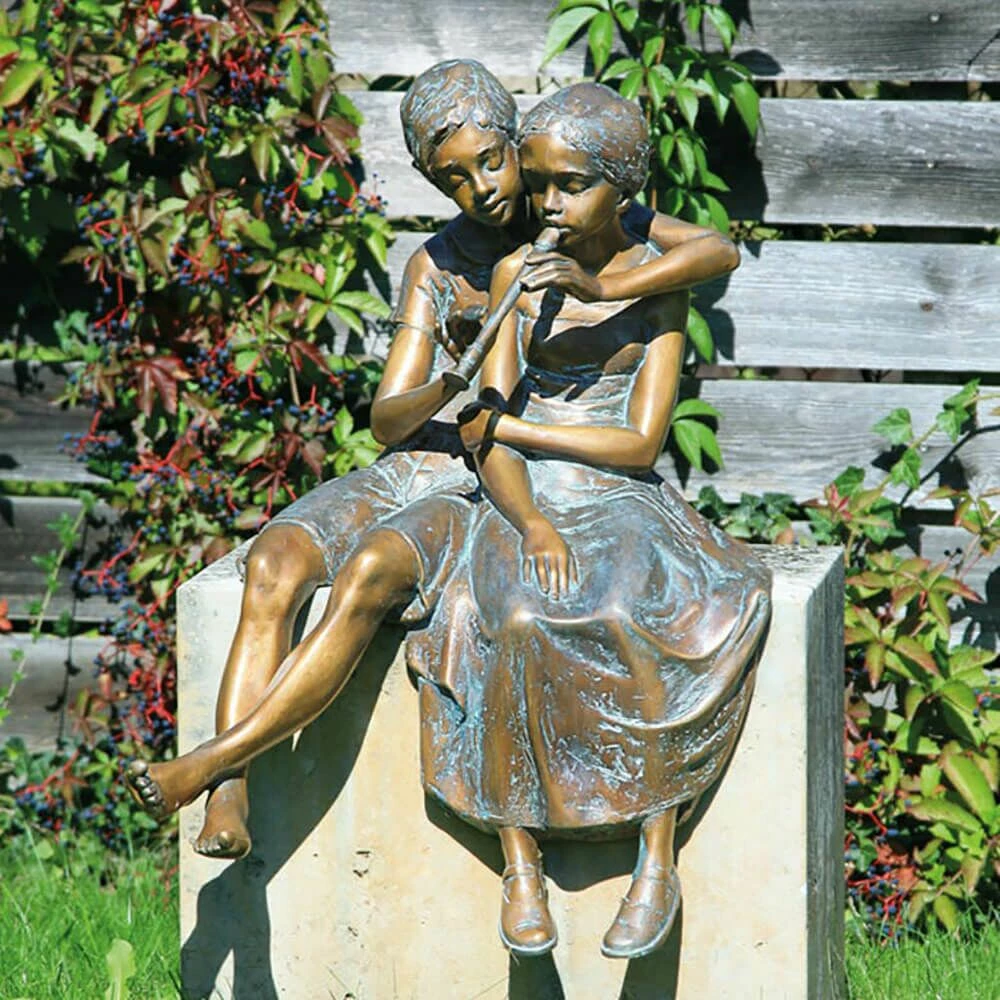 Limitierte Bronzestatue Mädchen & Junge Flötenspieler – Paar Mit Flöte