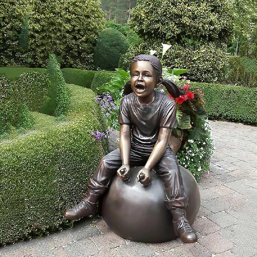 Mädchen Sitzt Auf Hüpfball – Bronzeskulptur – Mädchen Mit Hüpfball