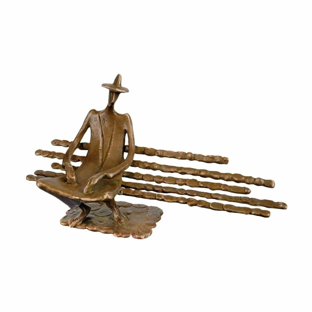 Mann Sitzt Auf Bank – Limitierte Designer Bronzefigur – Einsamer