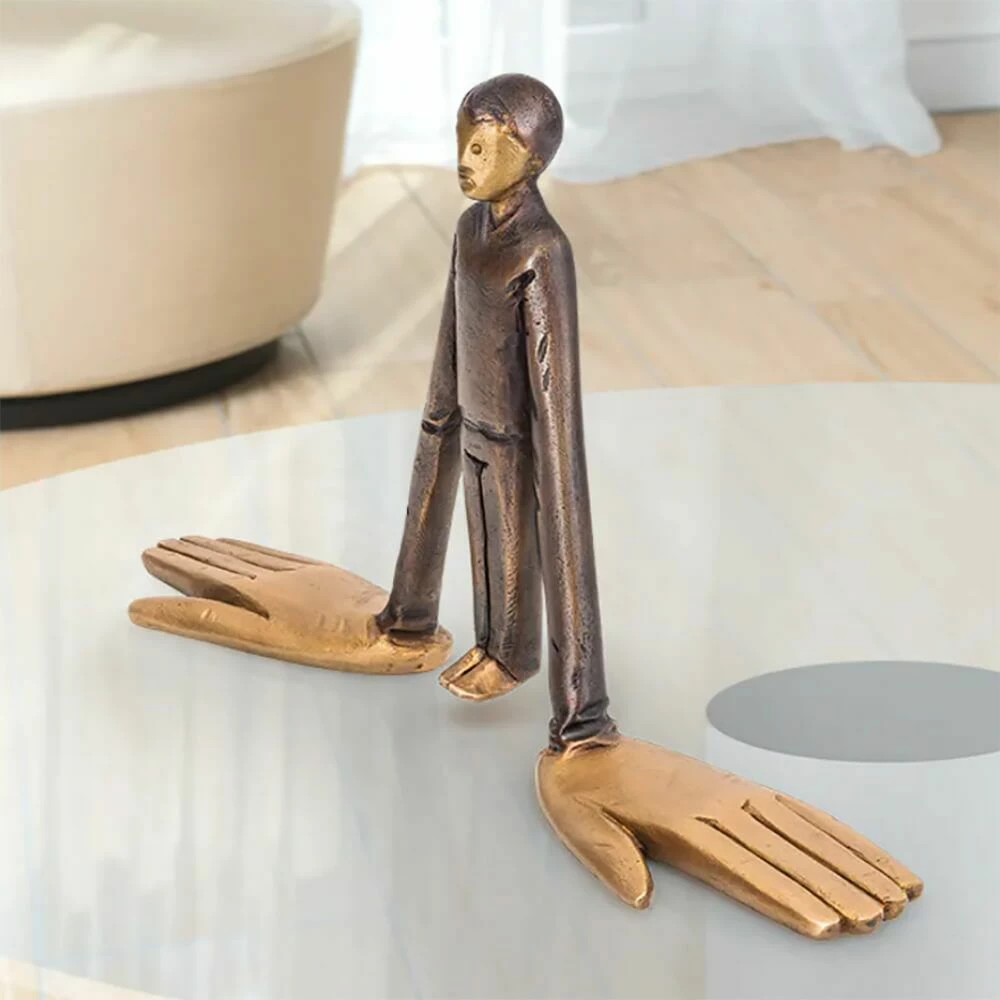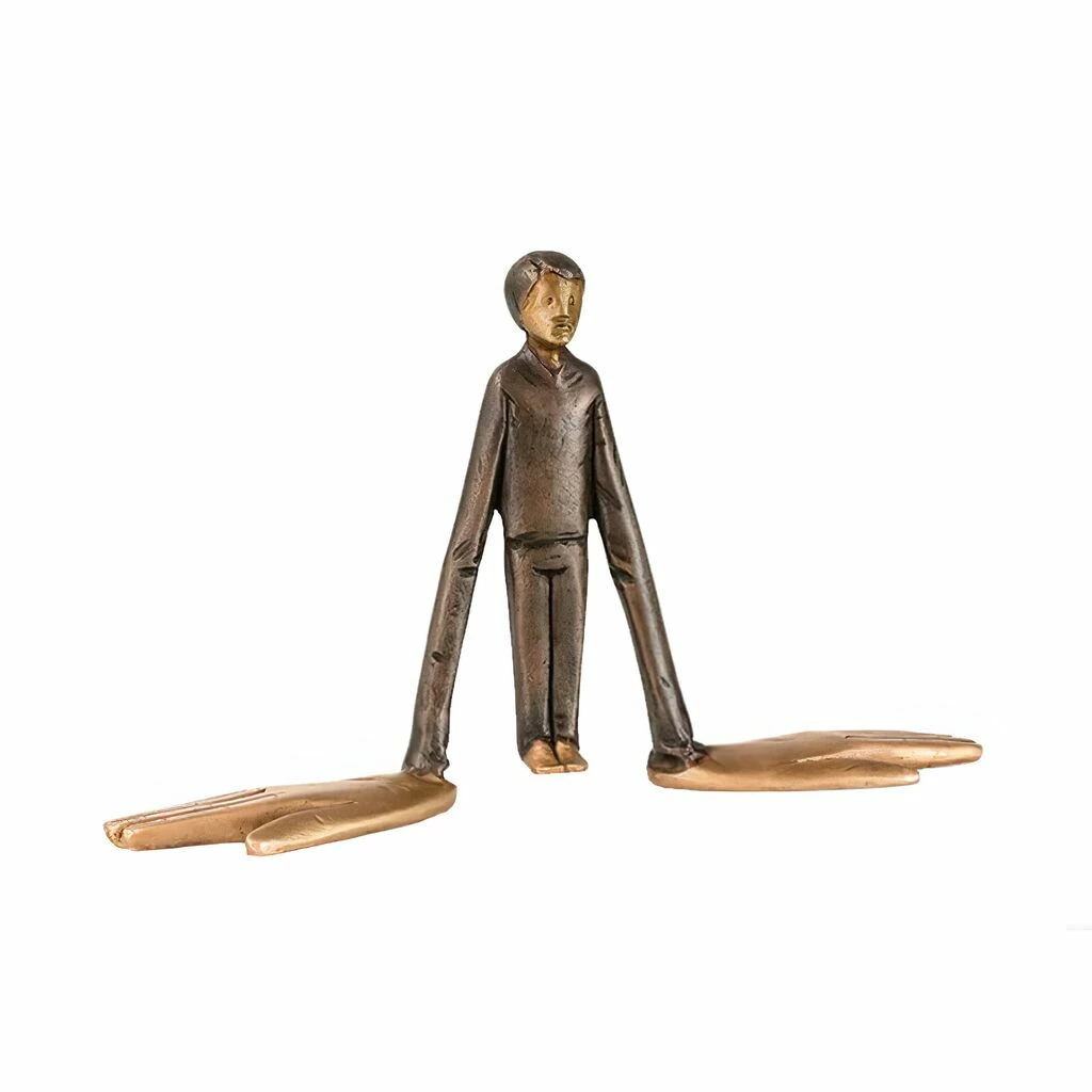 Mensch Lebt Auf Großen Händen – Bronzefigur – Mani Grandi