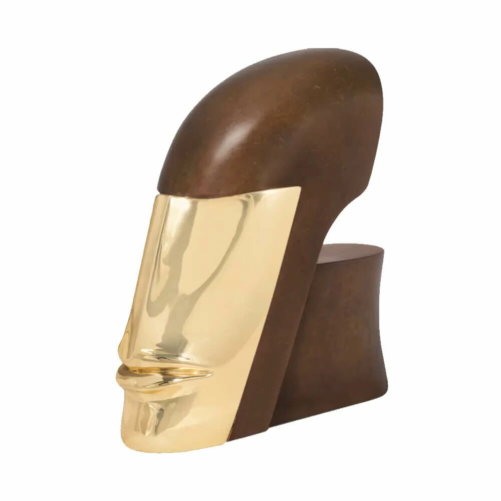Moderner Bronzekopf Limitiert Mit Goldenem Gesicht – Kopf Mit Maske