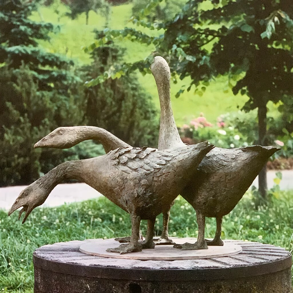 Neugierige Gans Aus Bronze – Limitierte Vogelskulpturen – Gans Kopf Nach Vorn