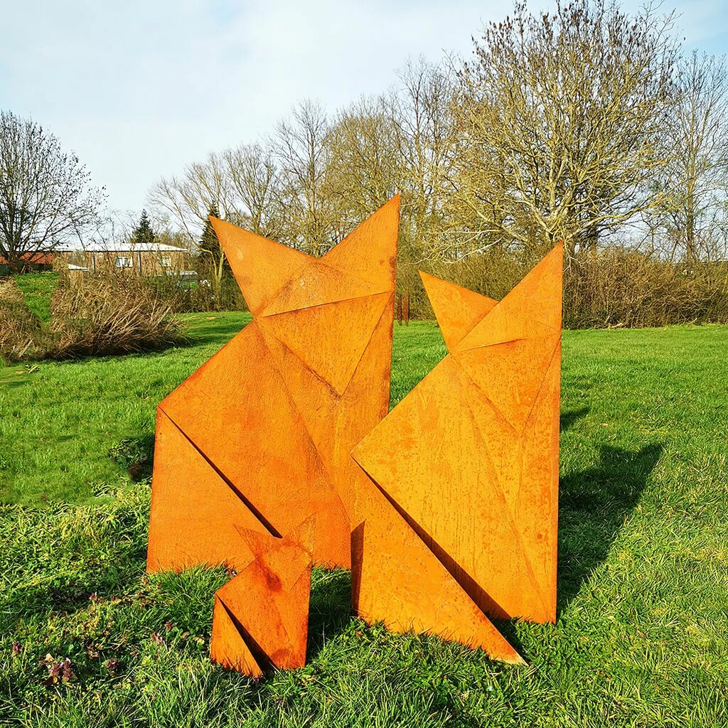Origami – die Kunst Papier zu falten, kommt ursprünglich aus Japan und China. Komplexe Origami Figuren begeistern die Betrachter heutzutage jedoch weltweit. Die kleinen Kunstfiguren groß gedacht und aus Metall in Rostoptik hergestellt, können Sie in unserem Online Shop kaufen. Um möglichst alle Details der gefalteten Objekte darzustellen, wurde sehr dünnes Metall verwendet, welches scharfe Ecken und Kanten aufweisen kann, weshalb der Umgang mit diesen Skulpturen vorsichtig erfolgen sollte.