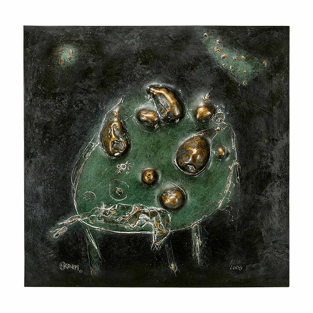 Dieses Relief stammt aus der Hand des Künstlers Otto Kruch. Seine Arbeiten sind in der Kunstszene angesehen und zahlreich ausgezeichnet. Diese schöne Skulptur von Otto Kruch wird während des kompletten Herstellungsprozesses streng durch den Künstler selbst kontrolliert. Dieser bearbeitet immer wieder die Formen, den Rohling und auch die fertige Figur per Hand. Die durch den Künstler vorgegebene Limitierung der Gartenfigur wird streng überwacht, wodurch die Skulpturen besonders für Sammler und Liebhaber seltener Bronzestatuen geeignet sind. Mit jeder Gartenstatue erhalten Sie ein Zertifikat des Künstlers mit Entstehungsjahr, Limitierung, Exemplarnummer sowie Materialnachweis. Das Zertifikat ist handsigniert. Das Metall ist extrem robust gegenüber Frost, Nässe sowie Hitze und sehr langlebig. Die Patina wird per Hand aufgetragen und führt aufgrund variierender Farbnuancen zu einer Einzigartigkeit der Skulptur. Die Farbe kann somit leicht vom Bild abweichen. Die Reinigung sollte ohne chemische Substanzen erfolgen, um die Schutzschicht nicht zu zerstören und kann einfach mit einem feuchten Tuch erfolgen. Die Gartenstatuen werden für die Befestigung an einem Sockel mit Bohrungen an der Unterseite ausgestattet. Passende Gewindestifte liegen der Lieferung bei. Aufgrund des Hohlgusses sind die Skulpturen trotz der massiven Bronze recht leicht und können somit problemlos überall aufgestellt werden.